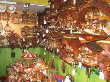 Tem também várias lojas de artesanato e produtos alemães, como essa loja de artigos de natal e relógios cucos.