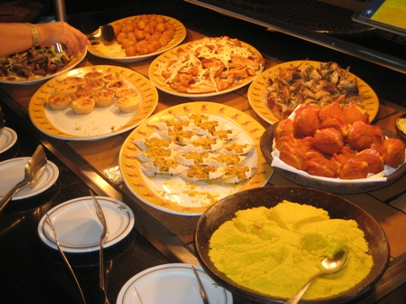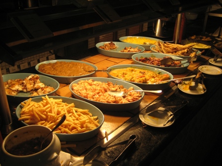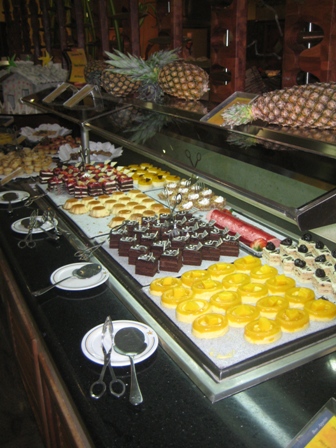 No quesito comida, o resort oferece uma variedade tão grande, que você acaba comendo mais do que necessário e ganhando uns quilinhos a mais. São ao todo 4 restaurantes temáticos e 2 restaurantes buffet, um na ala principal e outro mais informal junto às piscinas, que também serve petiscos durante a tarde. É realmente muito fartura! Como na maioria dos resorts, os restaurantes principais acabam pecando um pouco na qualidade em prol da quantidade. A comida nesses restaurantes é boa, mas nada de especial e sem nenhum ingrediente mais caro.