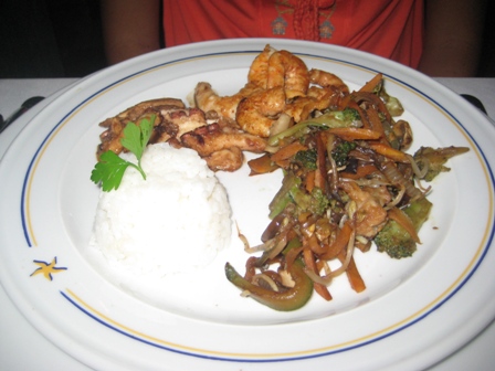 O restaurante de frutos do mar e carnes é na verdade o mesmo da piscina, mas que se transforma a noite para o esquema à la carte. Os pratos também estavam muito bons.