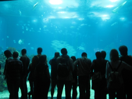 Apesar desse imprevisto, seguimos adiante para o nosso principal objetivo nessa região: o Oceanário de Lisboa. Esse é o maior aquário da Europa e como foi a primeira incursão européia do nosso filho, estávamos doidos para curtir com ele essa atração. Como ele é totalmente fechado, a chuva não atrapalhou. O Oceanário é bem grande e tem uma boa variedade da vida marinha. O tanque principal impressiona pelo tamanho, sendo que o vidro vai do teto ao piso, proporcionando um belo visual.