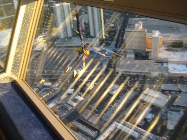 O ingresso simples custa US$16, e dá direito apenas a subir, mas se você quiser andar em dos brinquedos no topo da torre, ou pular de bungge jump lá de cima, vai ter que pagar alguns adicionais. Já adianto que para fazer qualquer uma dessas opções é preciso muita coragem, pois é muito alto e não deve ser nada agradável ficar pendurado naquela altura, ou ficar girando em uma cadeira que passa por fora da torre e você fica praticamente solto no espaço. Para vocês terem uma ideia da loucura, vejam essas fotos que eu tirei de um turista pulando lá de cima.