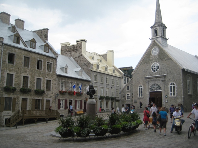 Voltando na direção do funicular e indo dessa vez para esquerda, você chegará a Place Royale, que é mais um dos pontos imperdíveis de Quebec! No caminho até lá você caminha por outras belas e fotogênicas ruelas, como a Rue Notre Dame. A praça tem um clima muito agradável e está rodeada por belas construções. Aproveite para descansar um pouquinho e tirar várias fotos!