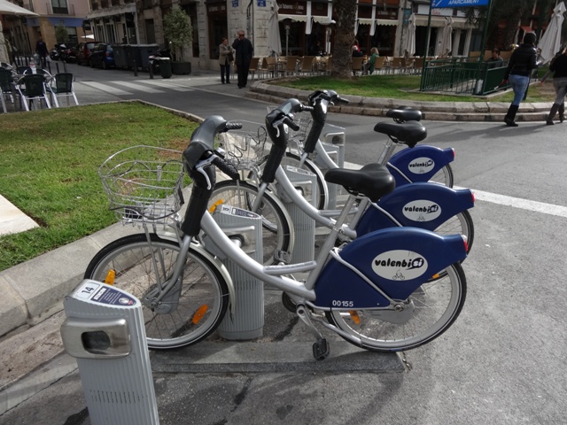 Agora, a melhor forma de curtir essa atração e ainda se deslocar até as atrações mais distantes do centro antigo é sem dúvida alugando uma bicicleta. Dessa forma você conseguirá efetivamente curtir o Jardín del Turia como se deve e ainda se sentir como um local. Como já acontece em várias cidades grandes, em Valência existe um serviço de aluguel de bicicletas self-service chamado de Valenbici com vários pontos espalhados pela cidade. Você pega uma bicicleta disponível em qualquer desses pontos e pode devolver em outro qualquer. No entanto, para usar o serviço é necessário pagar no mínimo o valor de €10 por semana, pois infelizmente não existe um valor diário. Para quem vai passar mais tempo na cidade, é bem em conta, mas para quem vai passear somente 1 dia como eu, não é tão barato assim, mas mesmo assim achei que valeu muito a pena. Outra vantagem do serviço é que não é necessário fazer nenhum cadastro prévio, portanto você pode se dirigir diretamente a máquina que fica ao lado das bicicletas e realizar o aluguel com seu cartão de crédito na hora. A pegadinha aqui é que não é em todos os pontos que o sistema permite você realizar essa operação, pois alguns só liberam as bicicletas para quem já realizou o aluguel previamente. Infelizmente o ponto que fica ao lado da Torre del Serranos é um desses, portanto tive que voltar até a praça da Catedral para conseguir alugar a minha. A máquina te fornece um código impresso, que serve de comprovante e também para você usar sempre que desejar pegar novamente a bicicleta. Após a confirmação da compra, a máquina te informa o número da bicicleta liberada, que estará destravada automaticamente. Na volta é só prender a bicicleta em qualquer ponto disponível que o próprio sistema reconhece automaticamente a sua devolução, não sendo necessário realizar nenhuma operação no sistema. Outra dica, é que a bicicleta vem também com um sistema de tranca manual que você pode usar quando desejar parar em qualquer ponto pelo caminho que tenha algum local para prender a bicicleta, bastando levar a chave com você.