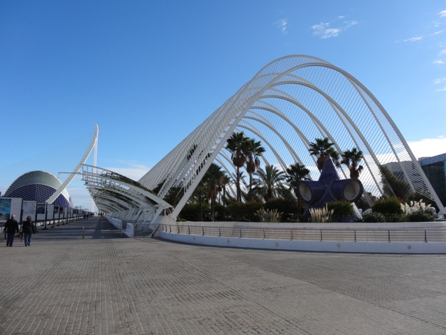 Apesar de todas as belezas do centro histórico e grande cartão postal da cidade atualmente é sem dúvida a Ciudad de las Artes y las Ciencias. Esse complexo futurístico e cultural projetado por Santiago Calatrava, um dos mais famosos arquitetos do momento, é realmente impressionante! Essa enorme área ao final do Jardín del Turia conta com várias atrações interessantes, como o L’Oceanogràfic, um dos maiores aquários da Europa, o Museo de las Ciencias Príncipe Felipe, o Palau de les Arts Reina Sofia e um belo jardim. Infelizmente não tive tempo para entrar nessas atrações, principalmente no L’Oceanogràfic, que dizem ser o mais interessante do complexo, mas só apreciar essas construções do lado de fora e toda a arquitetura totalmente original do complexo já é uma experiência sensacional e um dos programas mais imperdíveis de Valência! A bicicleta também ajudou nos deslocamentos, já que o complexo é grande e é bem bacana observar tudo de vários ângulos diferentes. Recomendo!