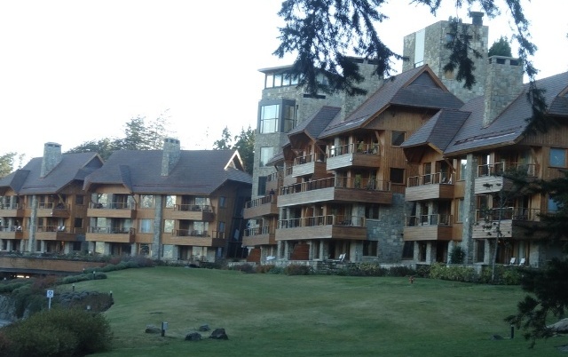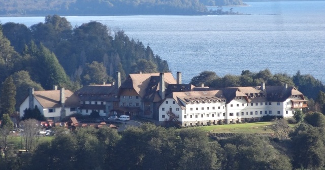 Sendo assim, nossa primeira parada efetiva acabou acontendo só no famoso Hotel Resort Llao Llao. Paramos primeiro em um mirante em frente para observá-lo de longe com a montanha ao fundo, o que é uma das fotos de cartão postal mais famosas da cidade. Nesse mirante também é possível tirar uma foto com o cão São Bernardo pagando um extra. Em seguida ele nos levou até a porta do hotel efetivamente, mas não paramos para descer e conhecê-lo por dentro, o que pode ser feito por conta própria depois.