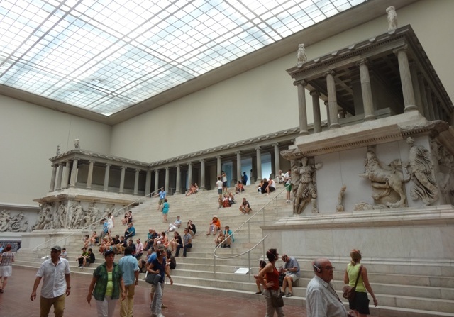 No entanto, optamos por visitar somente o Pergamon Museum, que é o principal e mais famoso da ilha. Não nos arrependemos, pois realmente esse museu é fantástico e foi com certeza uma das melhores atrações de Berlim, senão a melhor. Mesmo para quem não gosta tanto de museu assim, esse é imperdível! O grande diferencial desse museu é que além do acervo riquíssimo do Antigo Oriente Médio, eles conseguiram reproduzir de forma impressionante vários estruturas em tamanho real da Grécia Antiga e Babilônia. Logo de cara você se depara com o impressionante Altar de Pérgamo, que pertencia a Acrópole da cidade grega de mesmo nome. Destaque também para o Templo de Atenas, o Portão de Mileto e o belo Portão de Ishtar na Babilônia. Caminhando pelo museu e atravessando essas imponentes construções você praticamente se sente parte desses períodos da história!
