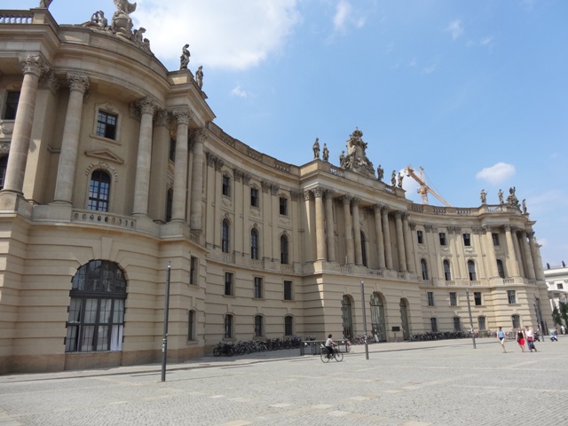 Um pouco mais adiante se encontra a Bebelplatz, praça da prestigiosa Universidade de Humboldt, que já teve vários alunos ilustres, como Albert Einstein. Além da universidade, essa praça virou um marco triste da história alemã devido a queima de livros ocorrida na mesma durante a época nazista, que foi responsável por dizimar grande parte do acervo das bibliotecas públicas alemãs. Para lembrar esse momento triste, em plena praça foi construída uma sala subterrânea com várias prateleiras vazias, lembrando uma biblioteca vazia, que pode ser vista por meio de uma janela de vidro no chão da praça.