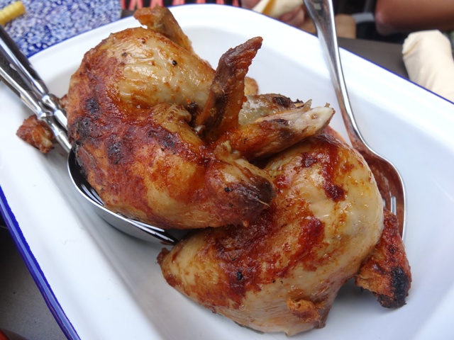 Para terminar, esse restaurante também escolhemos por acaso quando estávamos visitando o Hackescher Markt. Lá existem várias opções para todos os gostos, mas acabamos atraídos pela possibilidade de experimentar a famosa currywurst e também poder comer um franguinho grelhado bem ao nosso estilo, o que não é muito comum na Alemanha. Para quem viaja com crianças, esse franguinho é uma ótima pedida e não estava apimentado. A currywurst também estava muito boa, portanto apesar da simplicidade do restaurante, a refeição foi aprovada por toda família. Outra vantagem é que do outro lado da praça tem uma sorveteria Haagen-Dazs, que é uma ótima opção para sobremesa, especialmente no calor infernal do verão que pegamos.