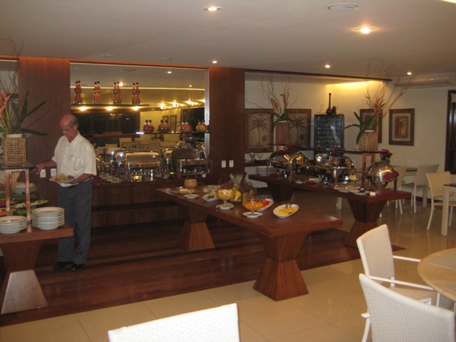 O café da manhã é muito bom e com bastante opções. Não é igual ao café dos resorts do nordeste, mas mesmo assim é bom. Não tem tapioca, mas se desejar existe um cozinheiro fazendo omeletes na hora e você escolhe o recheio.