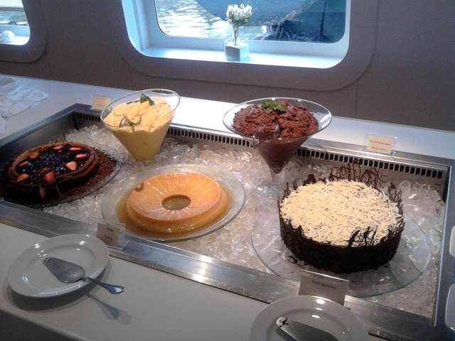 Bem, depois de tanta atividade vamos agora falar das refeições, que com certeza é uma parte importante da experiência. No restaurante principal, que também foi renovado nos últimos anos, são servidas as 3 refeições em estilo bufê separadas em várias ilhas específicas. A decoração está bem bonita e existem muitas opções. Achamos o jantar a melhor refeição de todas, pois além das opções tradicionais, conta com diversos pratos mais gourmet indicados pelo chef, também chamados de “Sugestões do Chef”, e de excelente qualidade.