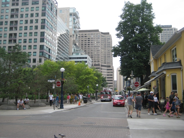 Descendo a rua em direção ao lago Ontario, você chega no Harbour Front, que tem um píer bem gostoso para se passear, com muitos restaurantes e mesas ao ar livre para observar a paisagem. Como estávamos no verão, eles montaram inclusive um palco para shows, mas não tivemos a oportunidade de assistir a nenhum. Se você tiver interesse, é daqui que saem também os barcos para a Toronto Island, que tem uma imensa área de lazer com o visual do skyline da cidade. Infelizmente não tivemos tempo para fazer esse passeio, mas fica a dica.