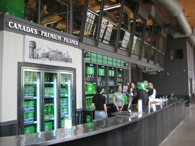 Mas não é só as crianças que se divertem não! Enquanto elas brincam de trenzinho, os adultos podem curtir no galpão ao lado a Steam Whistle Brewing, que é uma cervejaria tradicional da cidade. Ali você pode fazer um passeio guiado pela fábrica e entender todo o processo de fabricação, ou somente se sentar no bar e provar uma das amostras grátis de cerveja que eles oferecem (dica da Mirella). Não é preciso fazer o passeio para provar a cerveja e foi exatamente o que eu fiz . A cerveja é bem gostosa!