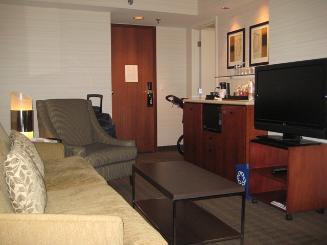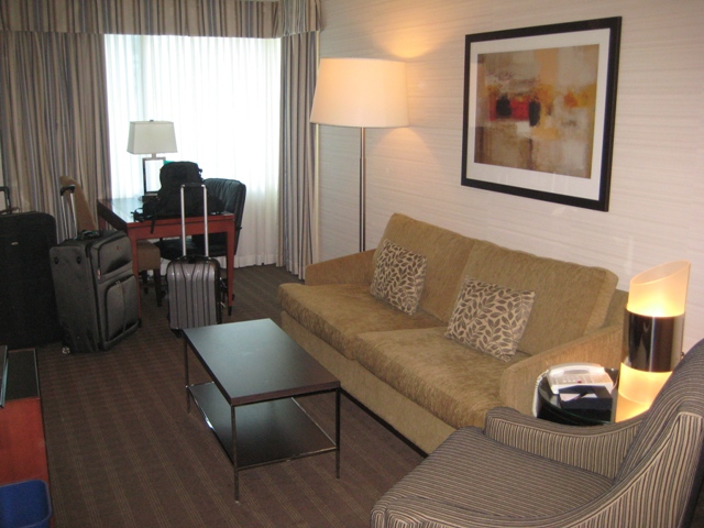 O hotel é realmente excelente e as fotos da internet são fiéis a realidade das instalações, ou seja, tudo novo e limpo, além do atendimento impecável. Os quartos são imensos e possuem 2 ambientes: um quarto de casal, uma sala com sofá-cama e mini-cozinha, além de um closet misturado com o banheiro. Decoração bem sofisticada e muito confortável. O lado negativo fica pela ausência de cofre no quarto e wifi pago (CAD $12 por dia), mas no resto só tenho elogios e recomendaria tranquilamente o hotel. Caso você não queira pagar pelo wifi, ou não tenha um laptop, no segundo andar eles possuem um business center com 2 computadores e impressora de uso gratuito.