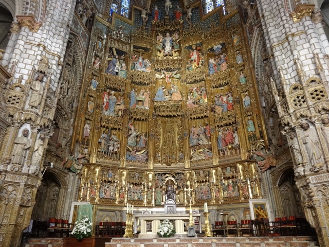 A primeira atração que visitei é também a principal da cidade: a Catedral de Toledo. Ela fica aberta de 10h às 18h de segunda a sábado e de 14h às 18h aos domingos, sendo que a entrada custa atualmente €11, com direito a um audioguia gratuito. Apesar do preço aparentemente caro, posso dizer que a visita vale cada centavo de euro, pois essa catedral é simplesmente espetacular e uma das mais bonitas que já conheci! Sua fachada externa já impressiona, tanto pela beleza quanto pelo tamanho, mas o melhor está reservado para o interior.