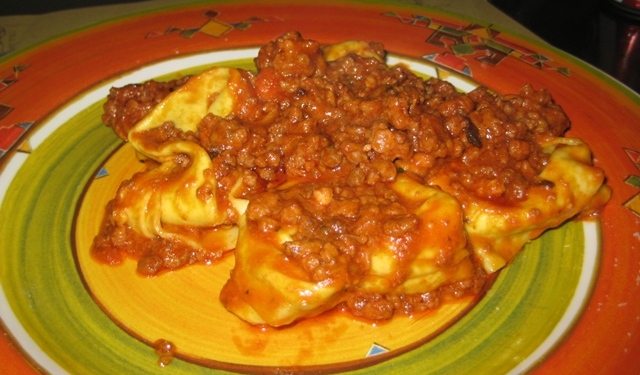 Tortellini de ricota com espinafre ao ragu