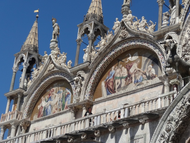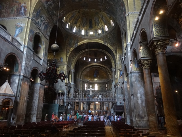 A vista do Campanário é bonita, mas como já conhecíamos não subimos dessa vez, já que a fila estava bem grande. A fila da Basílica de São Marcos também não era pequena, mas andava rápido e não é paga. Seu interior é belíssimo e imperdível, principalmente em virtude dos imensos e lindos mosaicos. Se você tiver tempo, não deixe também de visitar o Palácio dos Doges, que também não entramos dessa vez.