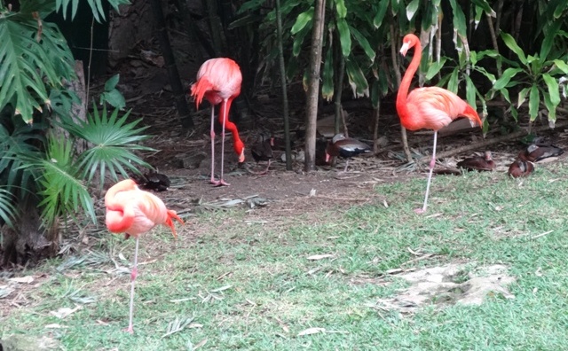 Agora, um dos grandes diferenciais desse resort é sem dúvida nenhuma a floresta que ele possui bem no centro do complexo, dividindo o prédio principal do lobby e restaurantes da área dos quartos e piscinas. Nas resenhas da internet eu achava que essa área relativamente pequena, mas não tem um tamanho razoável. Além de ser uma área arborizada e gostosa para as épocas quentes, ela serve de habitat para uma série de animais que ficam soltos o dia todo e caminham entre os hóspedes. É muito bacana e as crianças adoram! Tem vários pássaros, como pavão e flamingo, tartaruga, esquilos e muitos micos. Eles inclusive recomendam que você feche a porta da varanda do seu quarto quando for sair para evitar que os micos entrem no quarto.