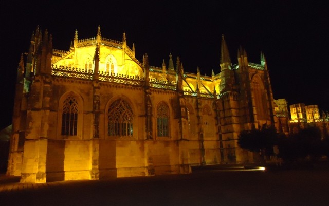 Como escolhemos Batalha para dormir, meramente por motivos logísticos, acabamos tendo o privilégio de ver o mosteiro todo iluminado a noite, o que também é um espetáculo! Pena que estava muito frio para ficar muito tempo ao ar livre curtindo o visual, mas como nosso hotel era vizinho ao mosteiro, bastava alguns passos para conseguir aproveitar.