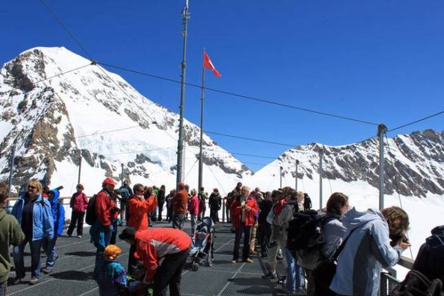 Depois dessa introdução toda você deve estar se perguntando o porquê do título, já que como é que um local onde se pratica esportes tipicamente de verão pode ter neve o ano inteiro. Eu explico, pois é justamente esse um dos seus grandes atrativos. É que ao lado da cidade fica a cadeia montanhosa de Jungfrau, cujo topo é totalmente coberto por neve o tempo todo, também conhecida como “neve eterna”. E não para por aí, já que lá também se encontra a estação de trem Jungfraujoch, considerada a mais alta da Europa e situada a exatos 3.454 metros acima do nível do mar. A subida de trem é um dos passeios mais famosos da Suíça e um dos mais bacanas e bonitos que já realizei em toda a minha vida, portanto recomendo muito!