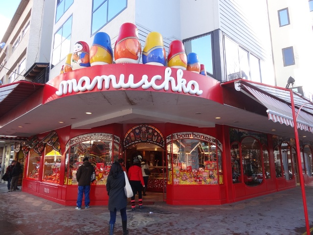 No entanto, um dos pontos altos da Mitre é sem dúvida nenhuma as famosas lojas de chocolate de Bariloche. São várias marcas e todas possuem algumas lojas espalhadas pela rua e outros pontos da cidade, portanto você vai com certeza passar por várias delas a cada esquina. Essa fartura toda gera uma certa confusão, pois você fica sem saber qual é melhor ou qual tem o melhor custo-benefício. Na verdade não existe uma resposta exata para essas perguntas e depende muito do gosto pessoal de cada um. As mais famosas são a Mamuschka, RapaNui, Abuela Goye e Del Turista. Experimentamos todas, mas a que gostamos mais, tanto pela qualidade do chocolate, quanto pelo atendimento mais atencioso, foi a Mamuschka. Todas suas filiais sempre ofereciam amostra gratuitas e foi o chocolate que achei mais gostoso, apesar das outras não ficarem muito atrás.