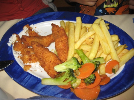 Falando de pulseira vip, seguimos uma dica do Ricardo Freire e pagamos um adicional por essa opção, chamado de Club Hacienda. Foi a melhor decisão que tivemos! Essa pulseira oferece uma série de pequenos diferenciais, como check-in exclusivo e acesso gratuito a um computador com internet, mas as grandes vantagens mesmo são a piscina exclusiva, uma reserva a mais nos restaurantes temáticos e um restaurante exclusivo (italiano) para o café da manhã e almoço. Como o hotel estava bem cheio devido ao spring break americano, esse restaurante exclusivo foi excelente, pois fazíamos nossas refeições na maior tranqüilidade e ainda por cima contávamos com um menu à la carte no almoço, cuja qualidade era bem melhor do que a do restaurante buffet principal. Os pratos eram simples, mas saborosos.