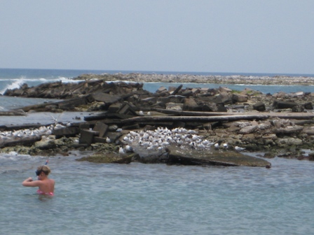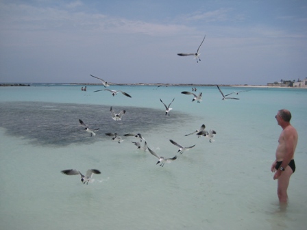 A praia em frente é muito boa e bonita, com água calminha e clara, apesar de não ser tão clara como a que vimos em Aruba e Playa del Carmen. A areia também uma delícia! As crianças adoram e a praia conta com vários coqueiros, que dão um toque especial à paisagem. A faixa de areia não é muito larga nesse pedaço, mas vi que em outros pontos ela aumenta, como em frente ao hotel Riu, que é vizinho. O vento incomodou um pouco, mas ouvi falar que é da época. O hotel conta também com uma quantidade bem grande de espreguiçadeiras e barracas na praia, mas que são bastante disputadas nas épocas cheias. De qualquer forma, mesmo chegando mais tarde, sempre encontrávamos alguma vazia, mas às vezes tínhamos que procurar um pouco.