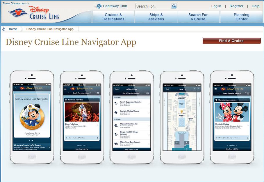 Aproveite também para baixar o aplicativo exclusivo para smartphones Disney Cruise Line Navigator App. Esse aplicativo só funciona quando conectado à rede wifi da Disney Cruise, que não permite acesso a internet, mas somente para esse aplicativo e comunicações internas. Você receberá as instruções para a conexão no check-in. O aplicativo é bem prático e permite que você visualize a programação completa para todos os dias do cruzeiro, além do mapa de todos os decks e descrição das atrações. Além da comodidade, o grande diferencial do aplicativo com relação a programação em papel é justamente poder ver a programação para os dias subsequentes, permitindo assim se planejar melhor e com antecedência. Muitas atividades se repetem ao longo dos dias, outras não, portanto você pode optar pelo horário que for mais adequado, além de ajudar na resolução de conflitos de agenda.