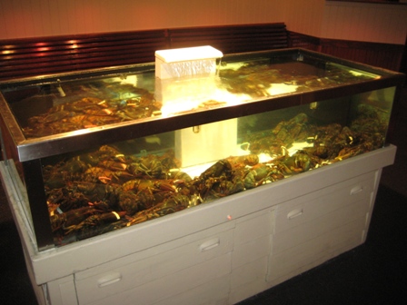 Todos os pratos vêm acompanhados de salada a sua escolha. Se você desejar, pode experimentar o prato mais tradicional, que são as lagostas. Elas ficam expostas em um tanque logo na entrada. No entanto, eu acabo sempre comendo os pratos a base de camarão e peixe, que são bem mais baratos do que no Brasil. A comida é bem gostosa!