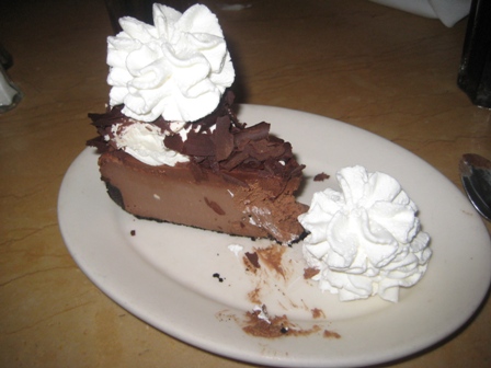 Agora, se você deseja uma bem saborosa acompanhada de uma deliciosa sobremesa, a melhor opção é o The Cheesecake Factory. Infelizmente existem poucas filiais em Orlando, sendo a mais próxima no shopping The Mall at Millenia, o que é um bom pretexto para se conhecer esse shopping. Como o próprio nome já diz, uma das especialidades desse restaurante são as cheesecakes, que existem em tudo que é sabor. São muitas opções, mas as que mais gosto são as de chocolate belga. Elas ficam expostas na entrada e se você não tomar cuidado, acaba almoçando cheesecake. São simplesmente sensacionais!!! Apesar do nome, esse restaurante também tem vários pratos bem saborosos e eu arriscaria dizer que são mais gostosos e incrementados que os das cadeias que mencionei anteriormente. Foi a melhor refeição que tivemos durante essa nossa última passagem por Orlando e apesar de ser um pouco fora de mão, vale muito a pena!